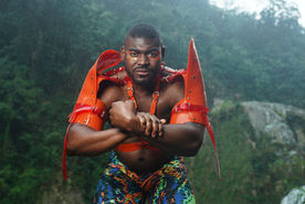 The question driving the project was- how can the tracing spiritual foundations of nyc club culture reveal new ways to center the sacred through an ecstatic aesthetic? And, how are the ecstatic aesthetics of NYC club culture linked to Afro-Caribbean traditions of Carnival? Through a residence with New Waves Dance Institute, MX Oops collaborated with designer and Mas band leader Robert Young, wearing this banana leaf garment. Photographed by Arnaldo James near Port of Spain, Trinidad.