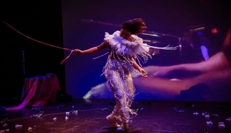 Plasma is a multimedia dance performance ritual honoring the Divine Femme. Plasma is nectar. Rap, vogue, and general relativity collide in a lecture presentation turned hybrid nightclub spectacle. Plasma is a meditational booty bass invocation. Mx. Oops, master of ceremonies, weaves wildly appropriative ritual ceremony with nightclub ecstatics. Plasma is ecstatics over aesthetics. Who would have thought that the dance floor is the place to look for modern mystics? Come join us for a ritual investigation of the cosmic booty pop. Come get drenched in your own indeterminacy.